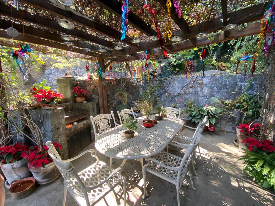La propiedad consiste de 3 diferente construcciones sobre 7 terrazas en la falda del cerro. En la primera construcción hay sala, comedor, cocina, baño completo y terraza. En la segunda construcción hay 2 recamaras y un baño completo. En la tercera construcción hay un estudio o recamara sin baño. Cuenta con 2 cisternas y toma de agua del municipio. Estacionamiento para 2 autos. Constancia comunal