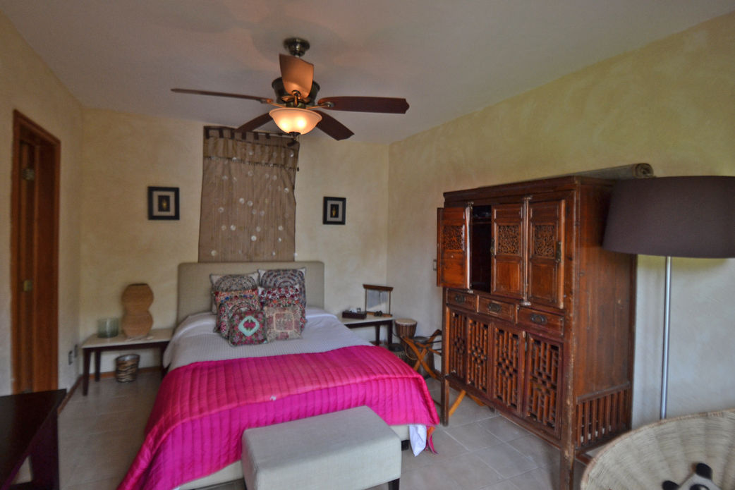 Hermosa propiedad ubicada en una calle privada, casa tipo colonial mexicano moderno de 5 recamaras, cada recamara con su baño privado. Cocina tipica mexicana, sala grande con chimenea y un preciosa bóveda Catalan. Terraza grande que sale al jardin con alberca y jacuzzi Cuenta con un estudio con terraza en el segundo piso con vistas espectaculares a los cerros y el jardin principal. Jardin amplio de diversas plantas creando un diseño armonico, con dos lagos con cascadas y un hermoso jardin zen escondido. Cuenta con escritura publica